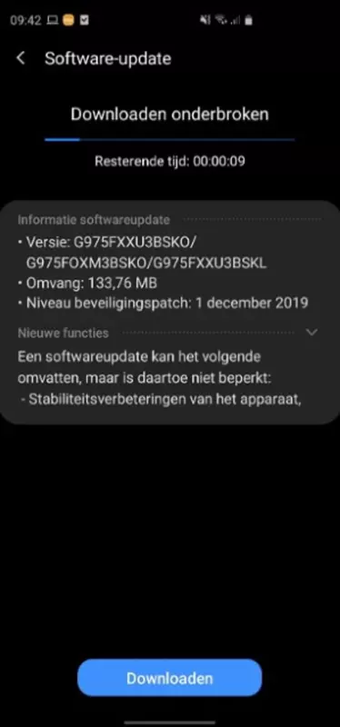 Aktualizacja przyszła z wersją kompilacji G97 ** XXU3BSKO, grudniową poprawką bezpieczeństwa, taką jak Galaxy A50 i Galaxy Note 8, oraz zastrzeżoną powłoką One UI 2.0.