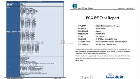Globalny model Xiaomi 15 Ultra ma numer modelu "25010PN30G" i otrzymał certyfikat FCC pod identyfikatorem "2AFZZPN30G". Zgodnie z certyfikatem, smartfon obsługuje sieci 2G/3G/4G/5G, Wi-Fi z trzema pasmami, Bluetooth (BR, EDR, LE) i NFC. Ponadto urządzenie będzie działać pod kontrolą Xiaomi HyperOS 2.0 na Androidzie 15.