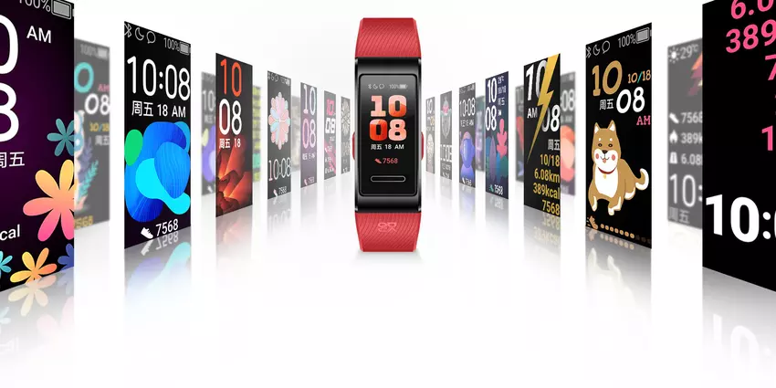 Zewnętrznie Huawei Band 4 Pro jest podobny do zeszłorocznego Band 3 Pro: ma ten sam 0,95-calowy kolorowy wyświetlacz AMOLED o rozdzielczości 240 × 120 ze stoma różnymi tarczami.