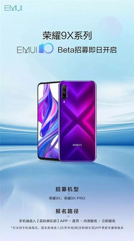 W dniu 6 grudnia, Huawei rozpoczął testowanie swojego firmware EMUI 10 na smartfonach Honor 9x i Honoru 9X Pro . Obecnie firma poszukuje pragnących przyłączyć się do programu.