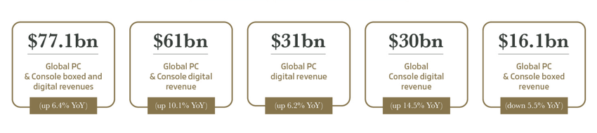- sprzedaży cyfrowe na PC i konsole były $ 61 mld USD (+ 10,1%).