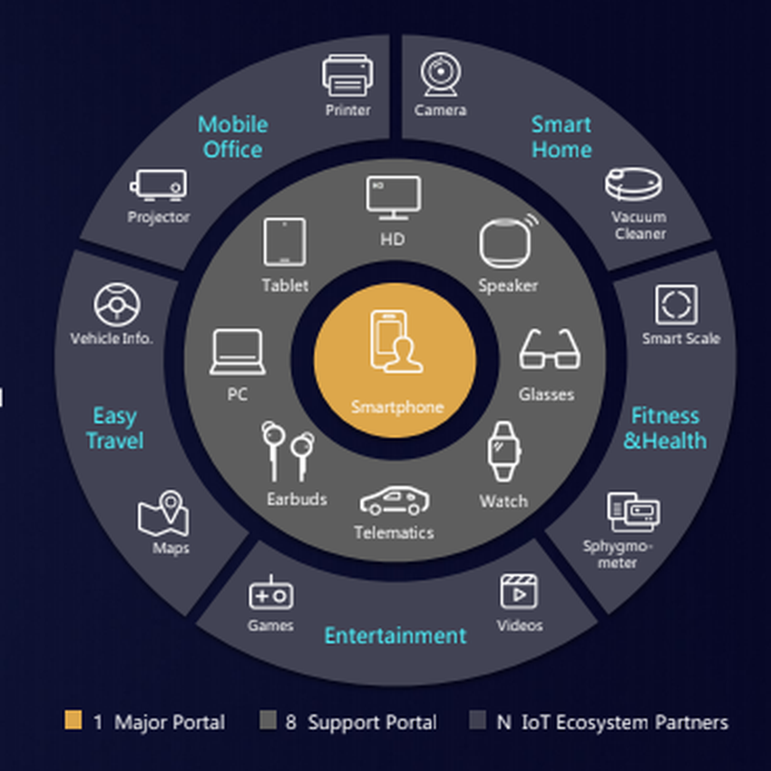 Strategia rozwoju HMS nazywa się „1 + 8 + N”, w której użytkownik smartfona mieszka w otoczeniu ekosystemu ośmiu urządzeń i nieograniczonej liczby usług IoT.