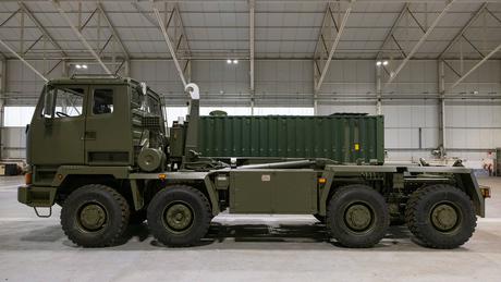 Ciężarówka i kontener z pociskami Gravehawk. Ilustracja: Forces News