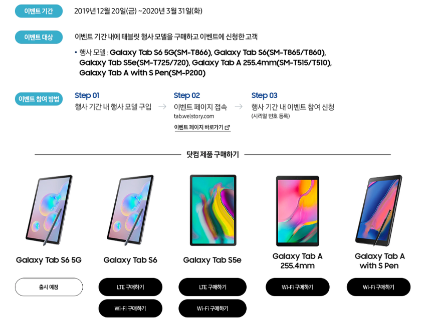 Galaxy Tab S6 5G jest również wymieniony wraz z innymi tabletami na stronie promocji dla rynku krajowego.