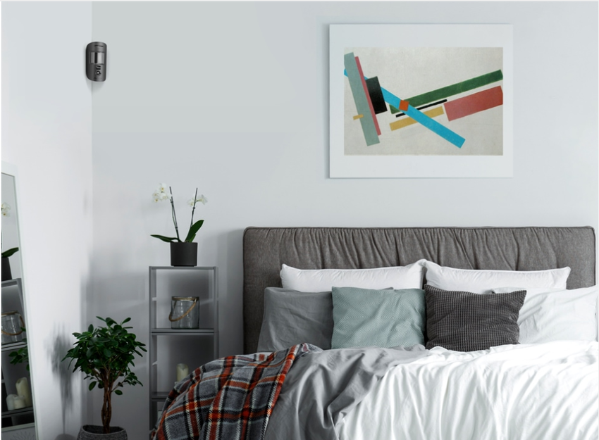 Istnieje jeden niuans związany z działaniem urządzenia. Chociaż czujnik reaguje na ruch po obu stronach siebie, z oczywistych powodów kamera nie może złapać tego, co znajduje się bezpośrednio pod nią. Poziomy kąt widzenia kamery MotionCam wynosi 88,5 °. Dlatego warto umieścić urządzenie w pomieszczeniu dokładnie tak, jak pokazano na zdjęciu. Zalecana wysokość - 2,4 m.