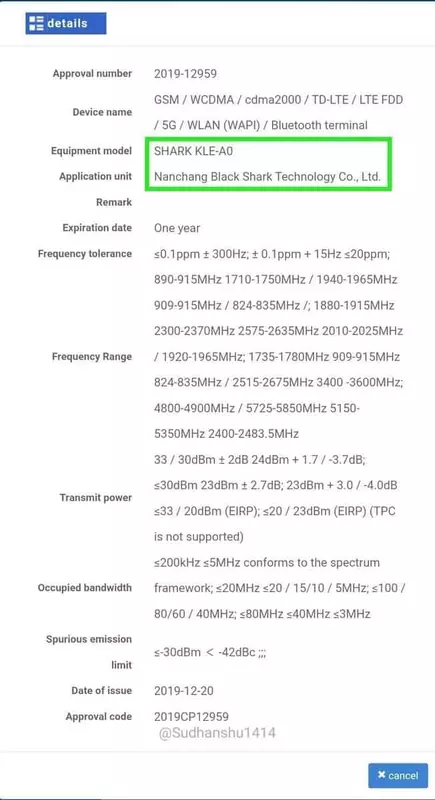 Ministerstwo Przemysłu i Technologii Informacyjnych w Chinach certyfikowało urządzenie o kryptonimie Shark KLE-A0, a źródła podają, że jest to Black Shark 3 5G.