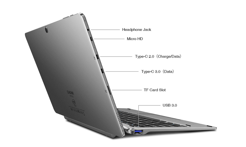 Po obu stronach zainstalowano kamery: przednia na 2MP i główna na 5MP. CHUWI Hi10X może być używany z rysikiem i odłączaną klawiaturą. Ponadto, producent nie żałował złącze: dwa USB Type-C i 3,5 mm gniazdo słuchawkowe.