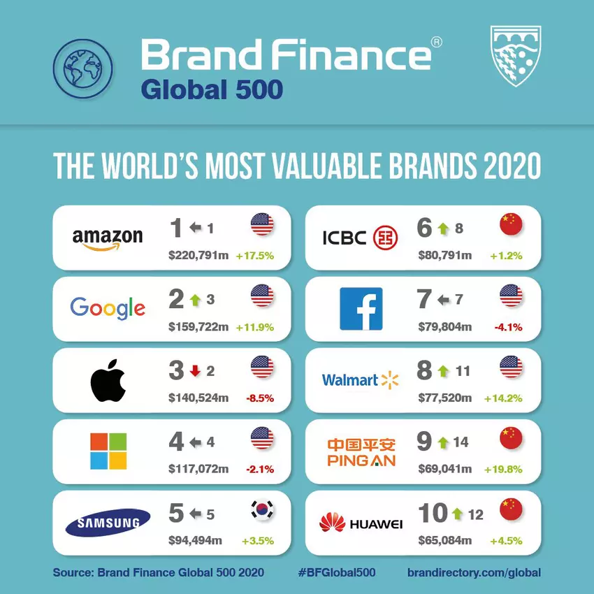 Po raz trzeci z rzędu Global 500 jest prowadzony przez Amazon o wartości 220,7 miliarda dolarów. A to + 17,5% w porównaniu do ubiegłego roku.