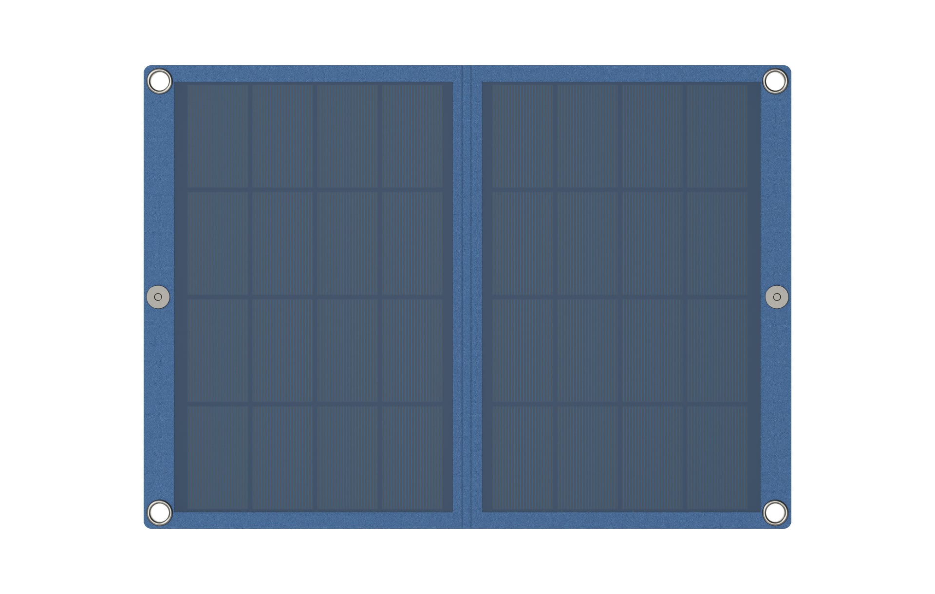 Jest wyposażony w zdejmowany panel słoneczny, który można przymocować do plecaka lub namiotu. Jest on podłączony przez USB-C i może ładować nie tylko laptopa, ale także power banki.