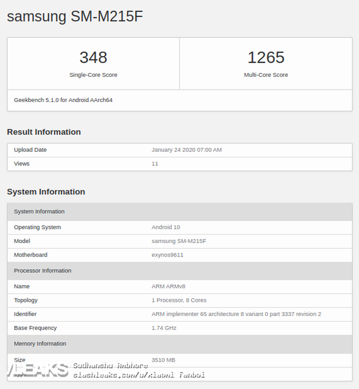 Tak więc, pracuje smartfon z procesorem Exynos 9611. Przypomnijmy, ze Galaxy M20 Exynos 7904. Podano również 4 GB RAM, ale oczekuje się także inne ich modyfikacje.