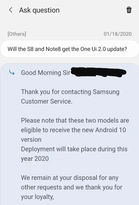 Jednak serwis wsparcia Samsung zgłosił inne informacje: komunikując się z jednym z użytkowników, pracownicy powiedzieli, że Galaxy S8 i Galaxy Note 8 otrzymają system Android 10. Aktualizacja ma zostać wydana „w 2020 roku”.