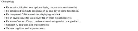 Aktualizacja nie rozwiązuje jednak problemów z tempem wirtualnego partnera i reakcją na powiadomienia podczas treningu, które występowały w wersji beta. Przyczyny tego nie zostały wyjaśnione.