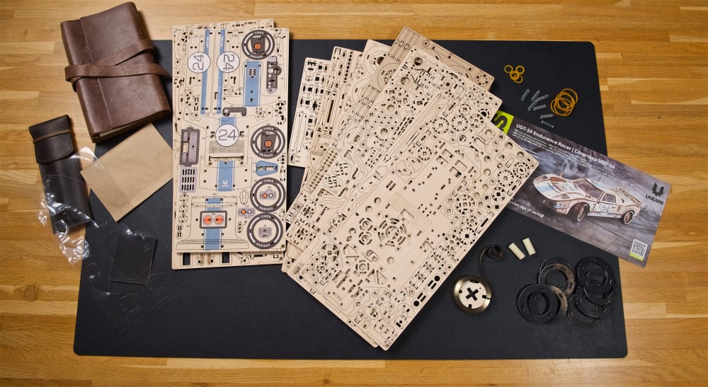Ukraińska marka Ugears, specjalizująca się w tworzeniu drewnianych modeli mechanicznych, zaprezentowała UGT-24 Endurance Racer, zestaw konstrukcyjny pozwalający na złożenie miniaturowej kopii klasycznego samochodu wyścigowego z połowy XX wieku. Model UGT-24 posiada w pełni funkcjonalne zawieszenie, silikonowe nakładki na koła dla lepszej przyczepności, kolorowy pasek wyścigowy biegnący w poprzek nadwozia oraz, po raz pierwszy w historii Ugears, plastikowe okna. Ponadto samochód ma otwieraną maskę i bagażnik, a także silnik V8 z ruchomymi tłokami, co zwiększa realizm projektu.