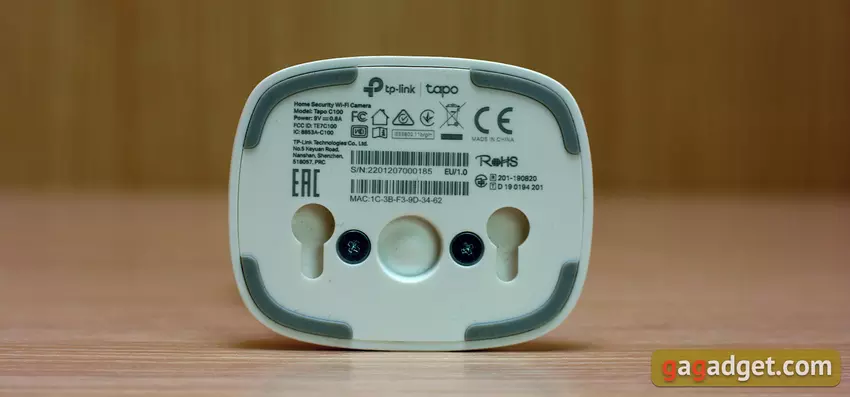 Podstawa dolna ma antypoślizgowe podkładki i wnęki do montażu na ścianie. Dzięki tej konstrukcji dopasowanie do powierzchni jest doskonałe. Nawiasem mówiąc, dzięki niewielkiej masie aparat można również przymocować dwustronną taśmą.