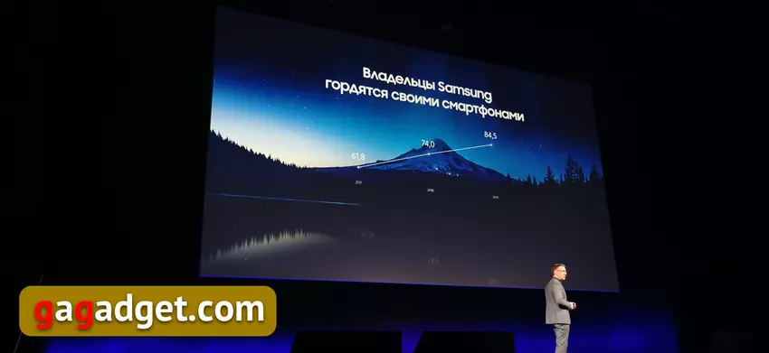 Nawiasem mówiąc, osobno na forum odnotowano stały wzrost (zgodnie z badaniami Samsunga) udziału właścicieli smartfonów Samsung, którzy są dumni ze swojego urządzenia. Taki ukłon w stronę niezrównanej satysfakcji klientów Apple. W 2019 r. Było ich już 84,5%. Mówiąc o smartfonach, trend zmierza w kierunku 5G (choć nie jest to jeszcze istotne dla naszego kraju). Na przykład Samsung mówi o sprzedanych 5 milionach smartfonów z obsługą 5G. Z jednej strony rośnie wskaźnik penetracji każdej nowej technologii na rynku z każdą generacją komunikacji mobilnej. Z drugiej strony technologia 5G jest jeszcze ważniejsza dla operatorów komórkowych niż dla użytkowników końcowych niż 4G. Dlatego trend jest oczywiście taki. Ale w ciągu najbliższych kilku lat jeszcze tego nie poczujemy. Ale po 2022 roku porozmawiamy o perspektywach.