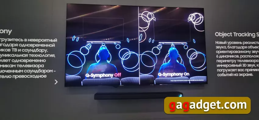 Kolejną miłą funkcją jest śledzenie źródeł dźwięku w ramce i przekierowywanie dźwięku we właściwe miejsca. Działa ciekawie - podobny system znajduje się w flagowych telewizorach Sony OLED. Szczerze mówiąc, wszystko to działa świetnie, jeśli jesteś bezpośrednio przed telewizorem. Dwa lub trzy źródła dźwięku poruszające się jednocześnie po ekranie są naprawdę dobrze słyszalne właśnie z tych obszarów ekranu, w których się znajdują. Ale z odległości 3-4 metrów (i tak wyglądają duże telewizory) efekt nie będzie tak silny.