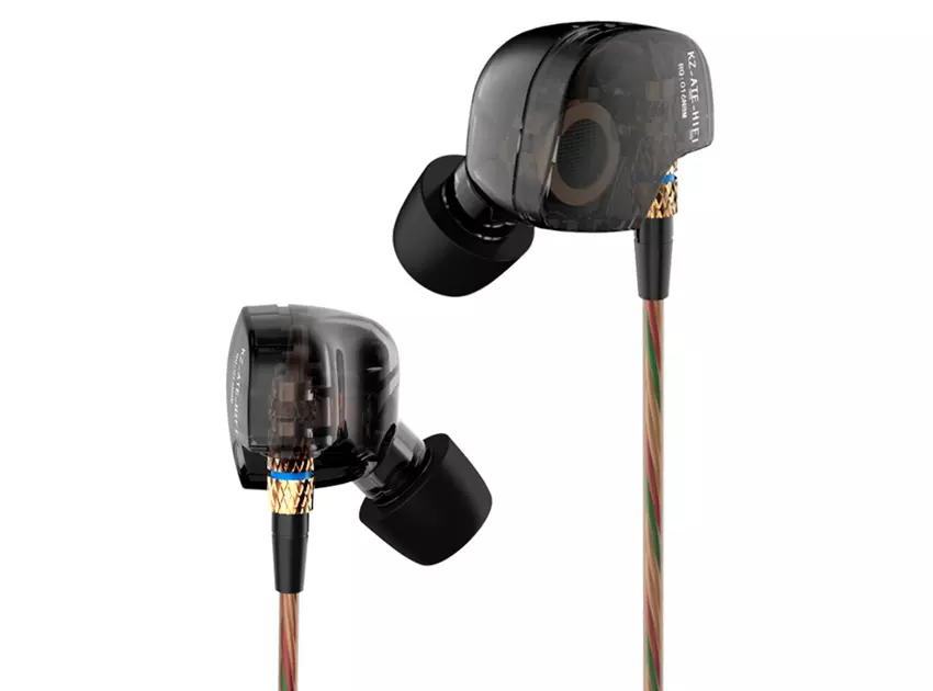 Pod jedną pozycją w sklepie firmowym KZ na AliExpress firma zdecydowała się na umieszczenie dwóch modeli: KZ ATE i KZ ATR. Chociaż różnica między nimi jest bardzo mała, więc taki ruch jest logiczny. Są to niedrogie słuchawki douszne z dynamicznymi przetwornikami i mocowaniem za uchem. Osobliwością jest to, że wykorzystuje stały kabel standardowego typu z półprzezroczystą izolacją i bez zaczepów na uszy. Zamiast tego na kablu pod każdym ze słuchawek umieszczono małe ciężarki (metalowe lub plastikowe w zależności od modelu), aby po prostu pociągnąć kabel za ucho. Istnieją opcje z mikrofonem i bez niego.
