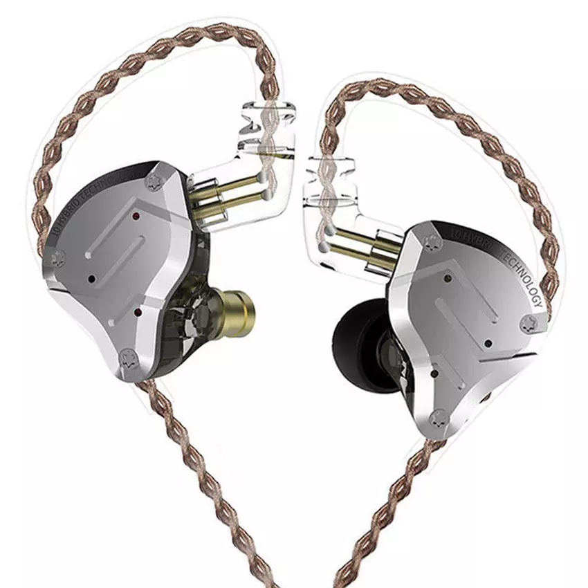 Najpopularniejsze w tej chwili są słuchawki KZ ZS10 Pro. Jest to model hybrydowy, który wykorzystuje konfigurację jednego dynamicznego i czterech wzmacniaczy emitujących na każdą słuchawkę. Zewnętrzna część słuchawek jest metalowa, wewnętrzna połowa to przezroczysty plastik. Możesz rozważyć, co dzieje się w środku. Kabel słuchawkowy jest wymienny, więc teoretycznie można go wymienić. Warto jednak wziąć pod uwagę, że do połączenia stosuje się dwubiegunowe złącza 0,75 mm, które same w sobie nie są wyjątkowe. Ale w przypadku KZ ZS10 Pro, dla lepszego zamocowania, mają wtopioną konstrukcję, dlatego należy starannie dobierać te kable wymienne od innych producentów. Cały kabel jest oplatany, ze stałymi zaczepami bez możliwości regulacji. Metoda mocowania jest tylko za uchem. KZ ZS10 Pro są dostępne w wersjach z mikrofonem i bez niego, istnieją różne schematy kolorów.