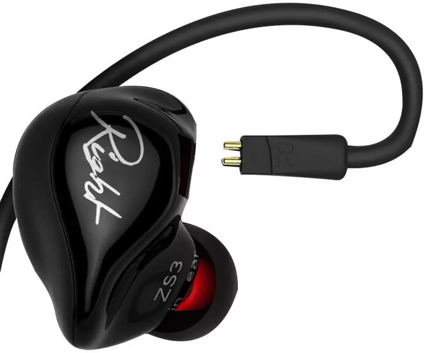 KZ ZS3 - nie nowy, ale wciąż aktualny model, który kiedyś był w naszej recenzji. Są to słuchawki douszne z dynamicznymi emiterami, zakładane za ucho z wyjmowanym kablem. Obudowy są formowane z tworzywa sztucznego i mają „anatomiczny” kształt, który przypomina niestandardowe IEM. Odłączany kabel z zaczepami na ucho i dwubiegunowymi złączami. Wcześniejsze dostawy odbywały się ze zwykłym kablem, teraz słuchawki są wyposażone w wersję „wiklinową” z czarną izolacją. Dostępne z mikrofonem lub bez.