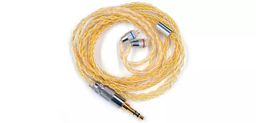 Firma ma również w magazynie wymienne kable. W tym wersję wiklinową. Uważa się, że kabel jest wykonany z wysokiej czystości miedzi beztlenowej ze srebrem i złotem. Trudno powiedzieć, jak dobrze jest w rzeczywistości, ale wygląda szczegółowo, jak metalowe złącza. Istnieją opcje ze złączami dwubiegunowymi i MMCX.