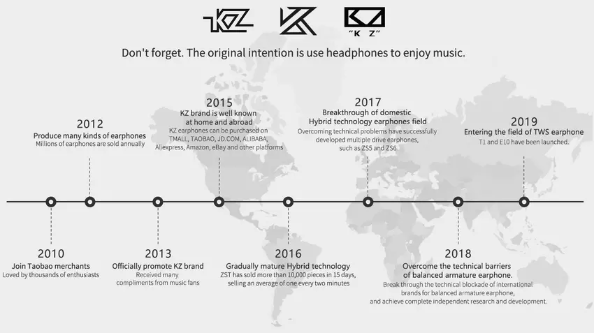 W ogromie Chin w tej chwili istnieje tak wiele marek, które produkują słuchawki. Teraz całkiem słusznie dominują w kategorii tanich modeli. Czasami są naprawdę bardzo ciekawe modele pod względem dźwięku w bardzo atrakcyjnej cenie. Jedną z takich marek jest Knowledge Zenith lub po prostu KZ. W ostatnich latach ich modele stały się już rozpoznawalne wśród pewnej kategorii fanów eksperymentujących z niedrogimi słuchawkami. Redaktorom gg w 2015 roku udało się zapoznać z trzema modelami budżetowymi KZ, później przyszedł do nas KZ ZS3. Pomimo imponującego asortymentu i ponad 10-letniej historii marka nie rozpowszechnia się zbytnio na temat swojej historii i innych interesujących szczegółów. Na oficjalnej stronie internetowej spółka została ograniczona do krótkiej osi czasu z niektórych ważnych wydarzeń i dat na razie. Pierwszym punktem jest rok 2010, kiedy KZ został umieszczony na Taobao. Japońska Wikipedia mówi, że 2010 to rok założenia a produkuje słuchawki KZ spółka ShenZhen YuanZe Electronics Co. Ltd.