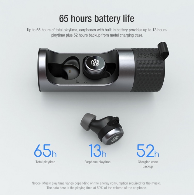Nillkin GO TW004 są zasilane bateriami 60 mAh, a w skrzynce zainstalowana jest bateria o 500 mAh. Tej objętości wystarczy na 65 godzin słuchania muzyki przy średnim poziomie głośności.