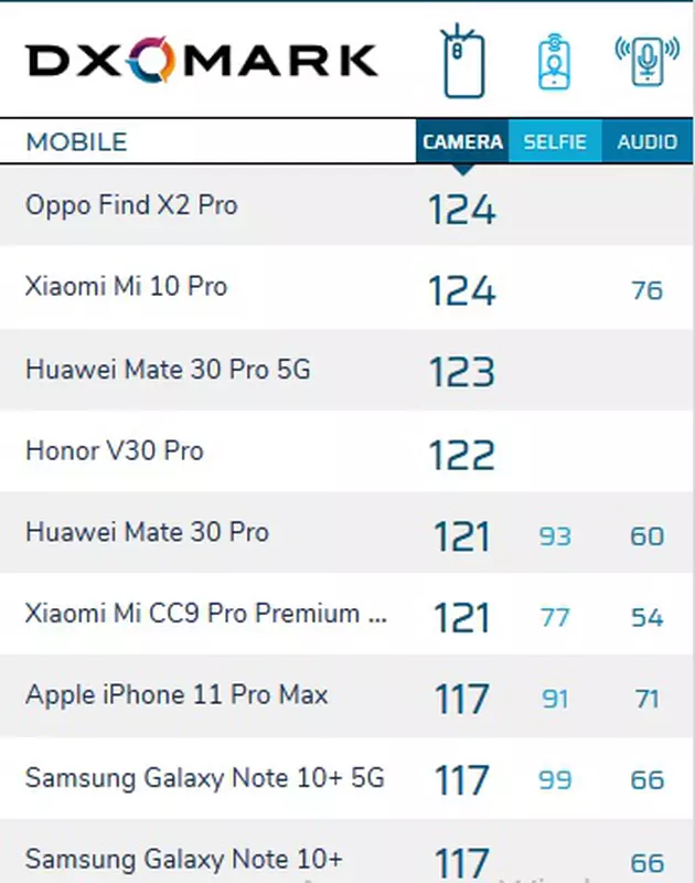 W ogólnym rankingu jest to pierwsze miejsce. To prawda, że dzieli go z flagowym Xiaomi Mi 10 Pro. Ale OPPO Find X2 Pro jednak postawiono na pierwszym miejscu.