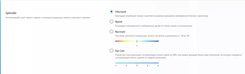 Za pomocą oprogramowania możesz regulować temperaturę barwową i włączać ochronę oczu.