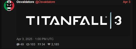 Informator i dataminer Osvaldatore, który jest dobrze znany fanom sieciowej strzelanki Apex Legends, zasugerował, że Titanfall 3 rzeczywiście jest w trakcie produkcji, publikując przykładowe logo gry.