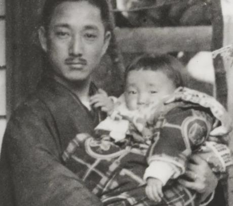 Morita Kyuzaemon i jego 4-miesięczny syn Akio. Ilustracja: akiomorita.com