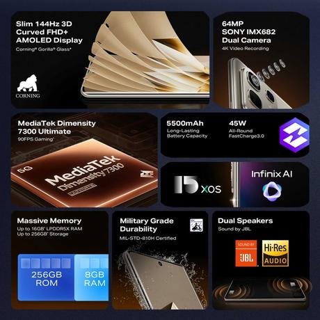 Główne cechy smartfona Infinix Note 50s 5G+. Ilustracja: Infinix