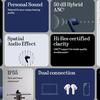 Słuchawki oferują hybrydową aktywną redukcję szumów do 48 dB, mają sześć mikrofonów i przestrzenny dźwięk. Obudowa jest chroniona zgodnie z normą IP55.