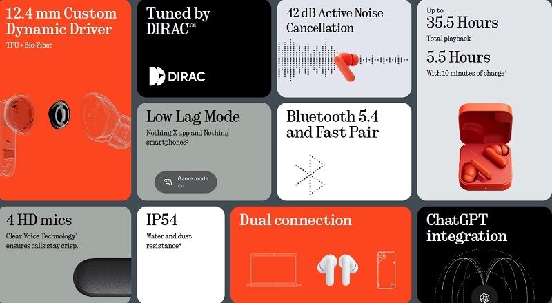 CMF Buds 2a wyposażono w 12,4-mm przetworniki z biowłókna, dostosowane przez specjalistów z Dirac.