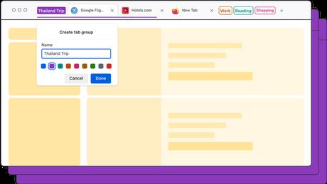 Do tej pory podobną możliwość mieli tylko użytkownicy Safari, gdzie zakładki można było przechowywać w osobnych grupach w celu późniejszego dostępu. Grupy zakładek są bardzo przydatne do planowania podróży, zakupów, badań projektów i innych zadań, które wymagają otwartych licznych zakładek.