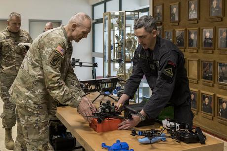 Dowódca armii USA generał Randy George ogląda dron FPV. Ilustracja: The Wall Street Journal