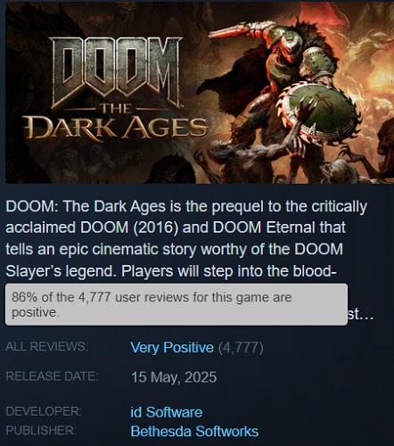 Debiut DOOM: The Dark Ages się udał - gra otrzymała doskonałe recenzje graczy i pochwalny zwiastun od wydawcy, ale szczytowy okres online na razie nie imponuje