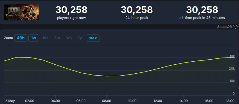 - DOOM: The Dark Ages — 30 232 graczy jednocześnie.