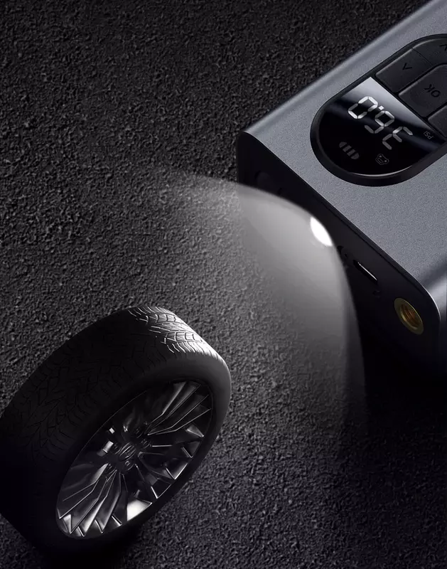 Baseus sprzedawał kompresor zasilany zapalniczką samochodową, ale nowy model otrzymał wbudowaną baterię 7500 mAh.