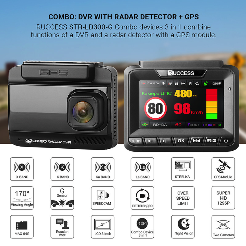 Model nazywa się Ruccess LD300 Pro. Gadżet sprzedawany jest w dwóch wersjach: z dodatkową kamerą wsteczną lub bez niej. Posiada specjalny czujnik rozpoznający radary przydrożne i wbudowany moduł GPS. Jest potrzebny do śledzenia lokalizacji samochodu, a także wstawiania etykiet do wideo i wyświetlania statystyk trasy.
