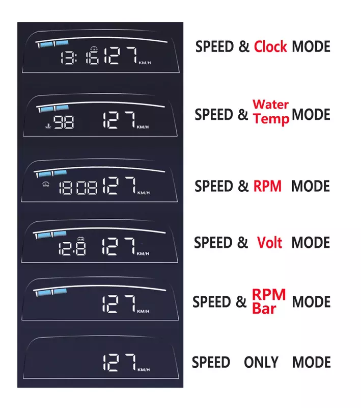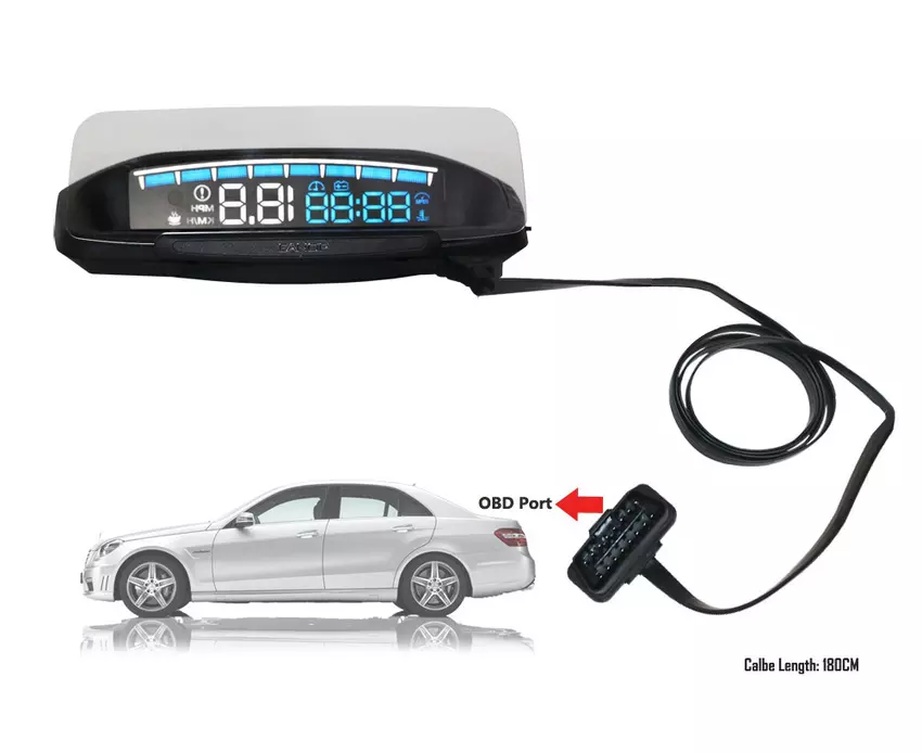 Projektor podłączony jest do uniwersalnego złącza diagnostycznego samochodu OBD2, długość kabla wynosi 1,8 m. Ale urządzenie nie nadaje się do samochodów z silnikiem diesla - tylko na benzynę. Również HUD może nie być kompatybilny z samochodami Mitsubishi i elektrycznymi (ponieważ samochody elektroniczne nie spełniają standardu OBD2).