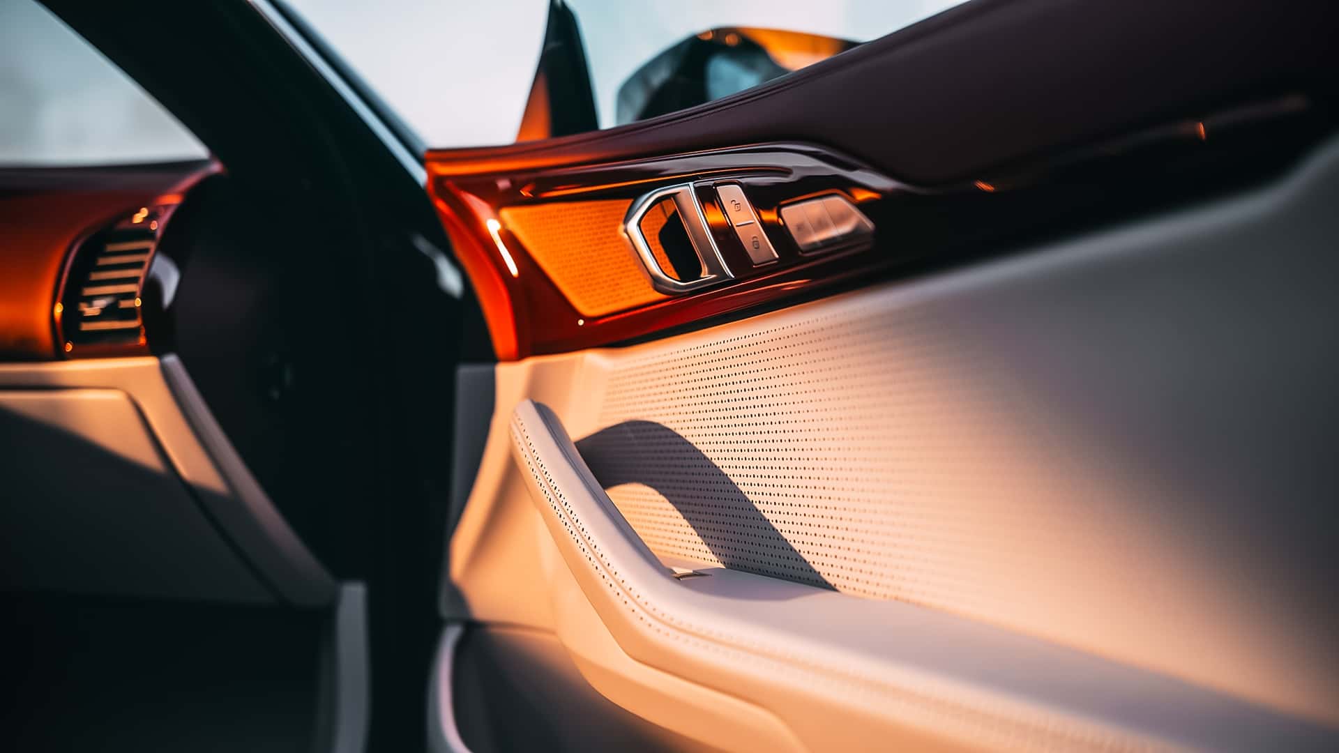 Wnętrze wykończone jest dwukolorową skórą w kolorze Sundown Maroon i Moonstone White, a niektóre elementy wnętrza mają ten sam kolor Sunstone Maroon. Oprócz tego element „spline” z zewnątrz przenosi się do środka w postaci wiązki światła, projecowanej na dwukolorową skórzaną tapicerkę wnętrza.