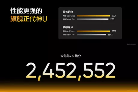 Za wysoką wydajność Realme Neo7 Turbo odpowiada chipset MediaTek Dimensity 9400e (4-nm, taktowanie do 3,4 GHz), który zdobył w teście AnTuTu 2,45 mln punktów. Układ chłodzenia stanowi komora parowa o powierzchni 7700 mm².