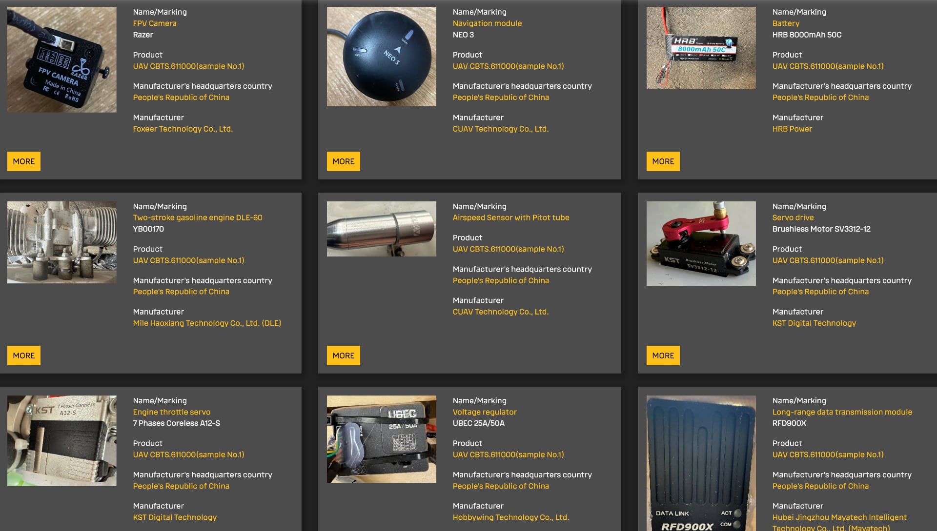 Komponenty drona, nazwanego GUR CBTS.611000. Ilustracja: WarSanctions