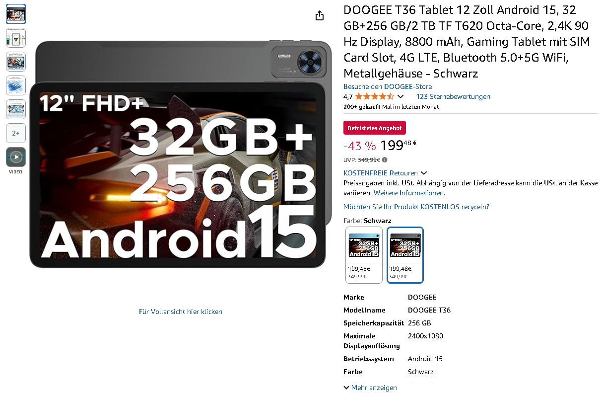 DOOGEE T36 Android 15 Tablet – Ogromna redukcja ceny o 150€ na Amazonie!