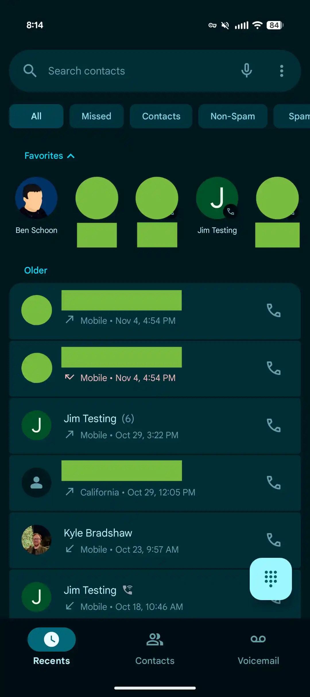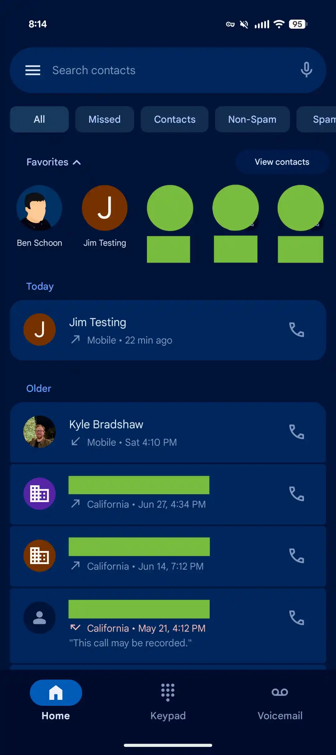 W beta‑wersji Google Phone 185 zaczęły się pojawiać nowe elementy interfejsu w firmowym stylu Material 3 Expressive. Aktualizacja obejmuje zmienione menu nawigacji, brak pływającego przycisku po prawej stronie, nowe zakładki "Dom" (wcześniej Ulubione i ostatnie), "Numer" oraz "Poczta głosowa", a także boczne menu dla szybkiego dostępu do kontaktów, historii połączeń, ustawień i pomocy.