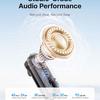 Autonomia — 6 godzin na jednym ładowaniu plus dodatkowe 24 godziny z etui, które jednocześnie pełni rolę uchwytu dla mikrofonu i pilota. Podłączenie — przez USB-C, Lightning lub adapter 3.5 mm.