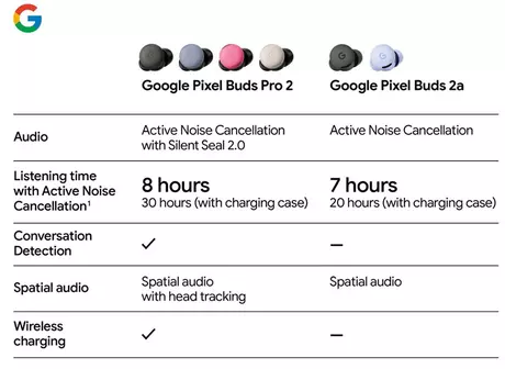 Niemiecki portal WinFuture zwrócił uwagę na informacje autorytetnego informatora Evana Blassa (Evan Blass), który poinformował, że Pixel Buds 2a będą kosztować 649 PLN (149 EUR) i będą oferowane w dwóch kolorach — szarym i “Iris”, który odpowiada kolorystyce Pixel 9a.