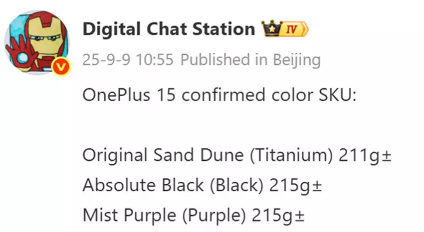 Autorytatywny insider Digital Chat Station ujawnił oficjalne nazwy kolorów obudowy OnePlus 15. Smartfon pojawi się w wersjach Original Sand Dune, Absolute Black i Mist Purple.