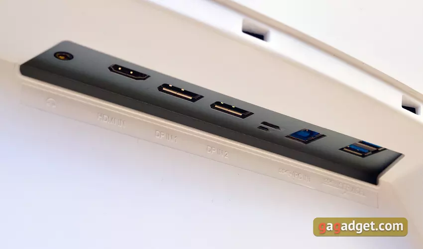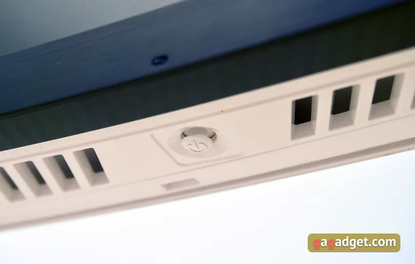 Podstawa ma kształt klina i bardzo imponujące wymiary i wagę. Mimo to monitor jest duży, konieczne jest zapewnienie odpowiedniej stabilności na stole. I nie tajemnicą jest, że do tego potrzebuje dużo miejsca. Dłatego przyszli kupujący muszą od razu pomyśleć nad wystarczającą ilością miejsca dla montażu.