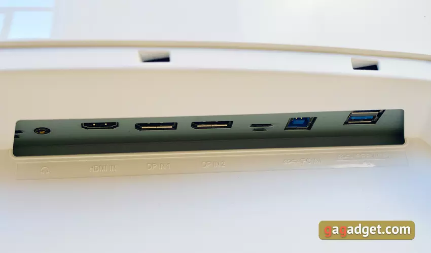 Zestaw portów nie jest super bogaty, ale wszystkie elementy są obecne. Dwa wejścia DisplayPort v1.4 i jedno wejście HDMI v2.0. Dlaczego nie 2.1 w obecnym flagowym modelu? Tego nie wiemy. Jest też gniazdo 3,5 mm do podłączenia słuchawek i USB 3.0 do dwóch portów. Z jakiegoś powodu Samsung zdecydował się również zignorować Type-C i Thunderbolt.